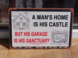 Метална табела За мъжа дома е крепост а гаража е църква светилище...